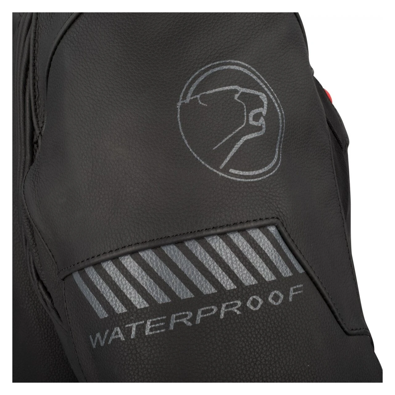 Technical jacket made with high quality cowhide and ShieldTex stretch fabric inserts. It has an ADS ventilation system with heat-sealed zips, a laminated waterproof BWTech Mega membrane and a high-performance Shelltech Mega removable thermal lining that allows it to adapt to different weather conditions. It incorporates CE certified protections on shoulders and elbows as well as a pocket for an optional back protector (sold separately).