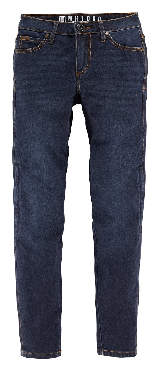 The Icon 1000 MH1000 Women’s Jeans take Cordura denim and configures it into a relaxed cut jean. Aramid knee reinforcement bolsters abrasion resistance while CE level 1 rated D3O armor at the knees and hips absorb impact energy. External zippered armor pockets allow you to remove armor once you reached your destination so you can walk around unencumbered and unassuming.