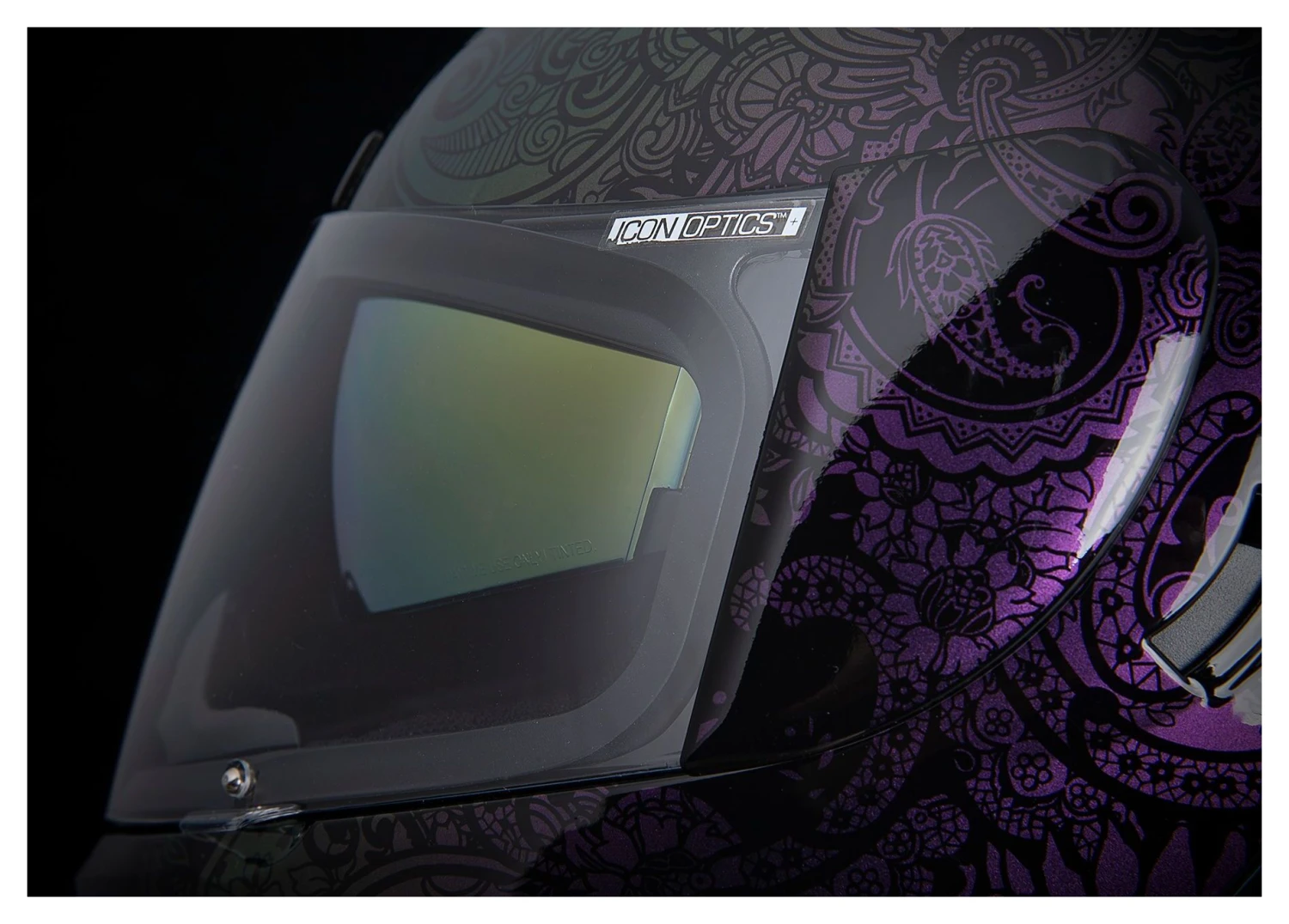 The Chantilly Opal version of the Icon Airform Helmet includes color-matched RST rear spoilers and a matching drop down internal sun visor. Very stunning.