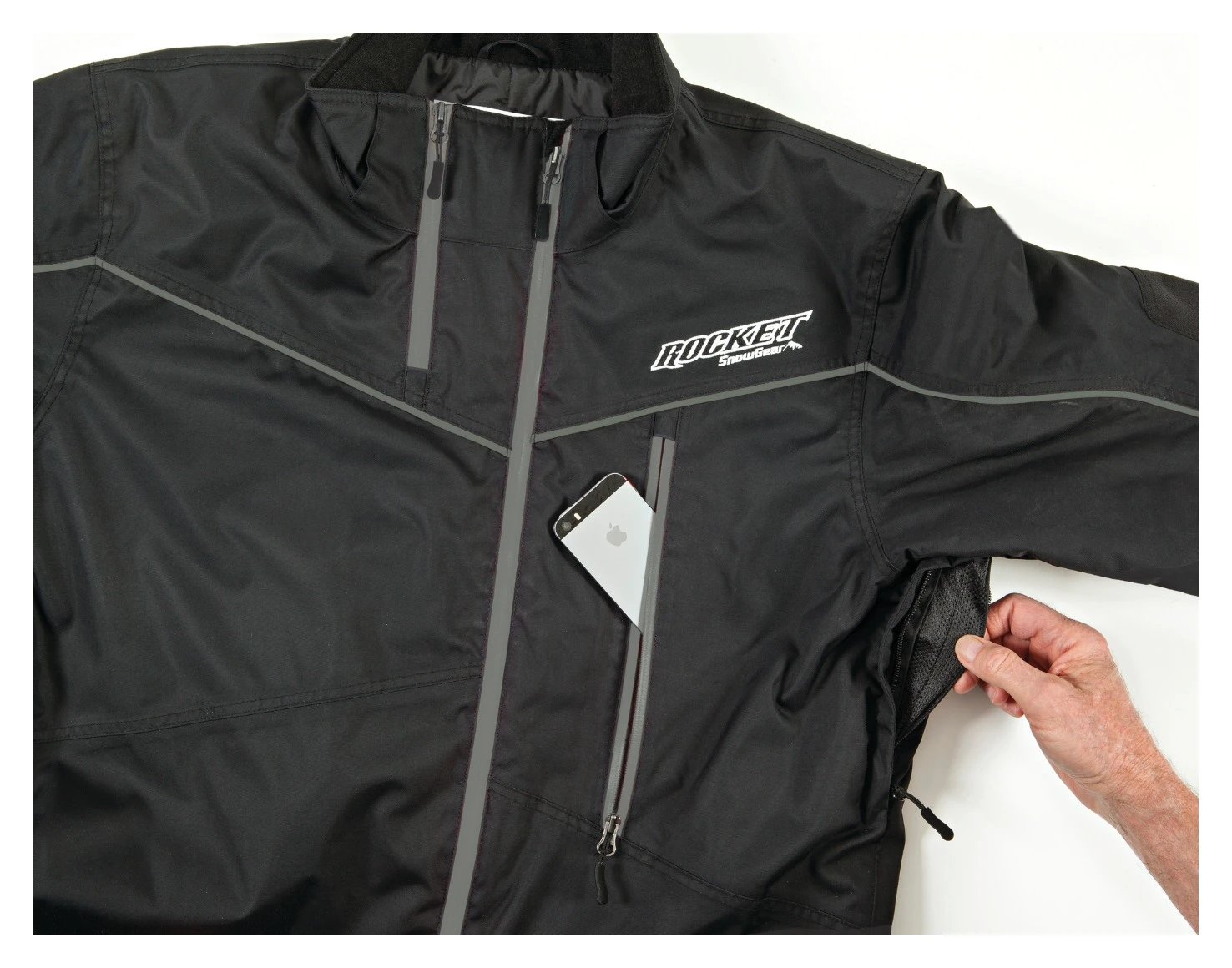- Smartphone pocket with built-in earphone port